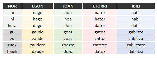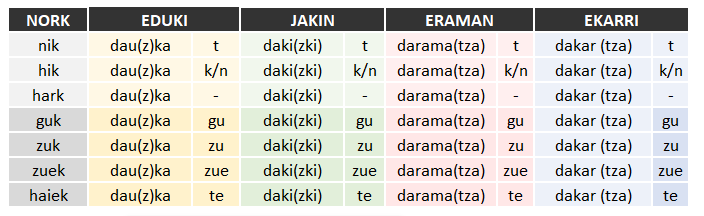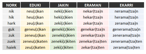 Éstos son los verbos trinkoak más usados. Si quieres una explicación más detallada,
