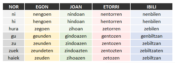 Éstos son los verbos trinkoak más usados. Si quieres una explicación más detallada,