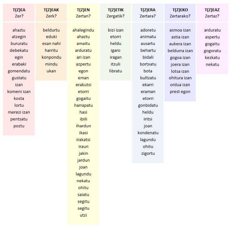 En los verbos compuestos, el Zertan no se aplica al verbo, sino al nombre.